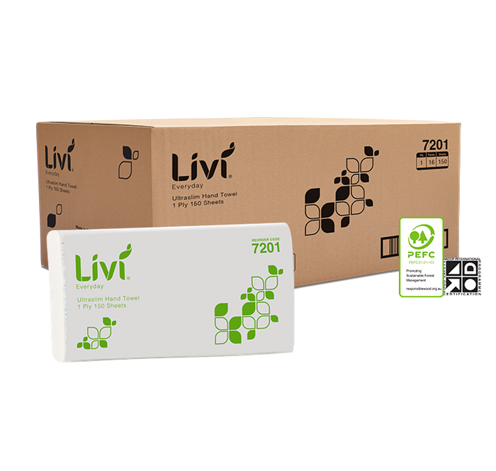 - HAND TOWEL - LIVI EVERYDAY ULTRASLIM 1 PLY 150 SHEETS × 16 PACKS