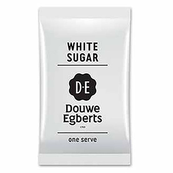 Douwe Egberts branded white sugar are individually wrapped in single serve sachets.