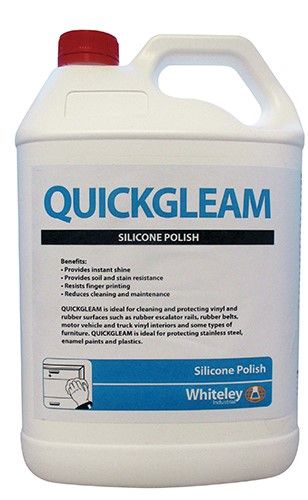 Quickgleam provides an instant shine and protective film to almost any surface. Quickgleam is ideal for cleaning and protecting vinyl and rubber surfaces such as rubber escalator rails, rubber belts, motor vehicle and truck vinyl interiors and some types of furniture.