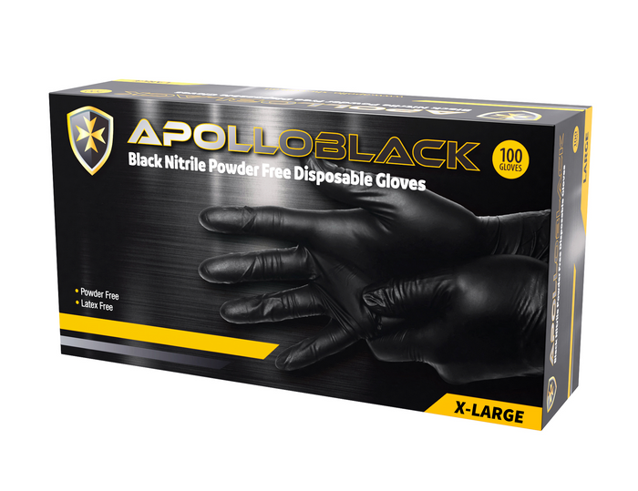 ApolloBlack Nitrile Black Powder Free Disposable Gloves provide excellent oil, grease, solvent and chemical resistance. They have excellent strength and offer more puncture resistance than latex and vinyl disposable gloves.