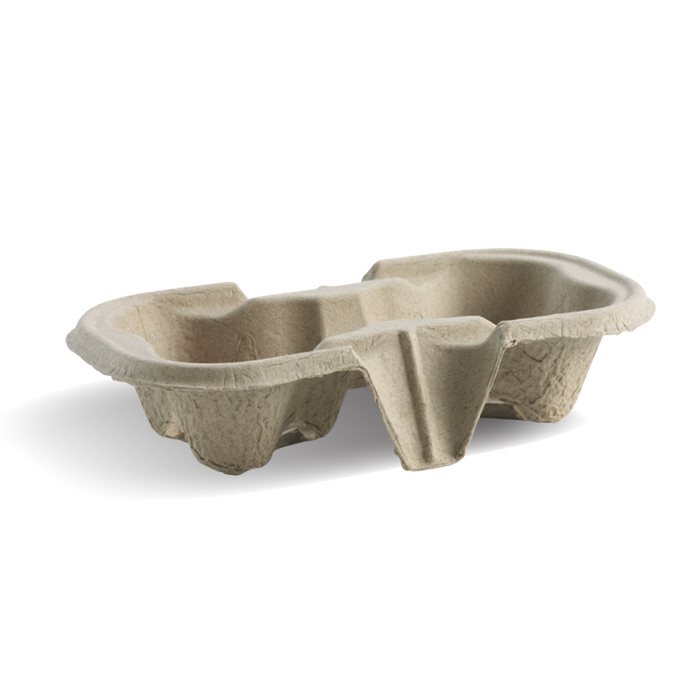 2 cup holder is made from 100% recycled paper pulp. This 2 drink cup carrier is suitable for clear and paper cups from 6oz to 22oz. Home compostable and recyclable.