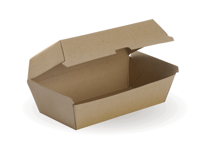 BioPak paperboard snack boxes are made in Australia. These paper clamshell containers are suitable for home composting.