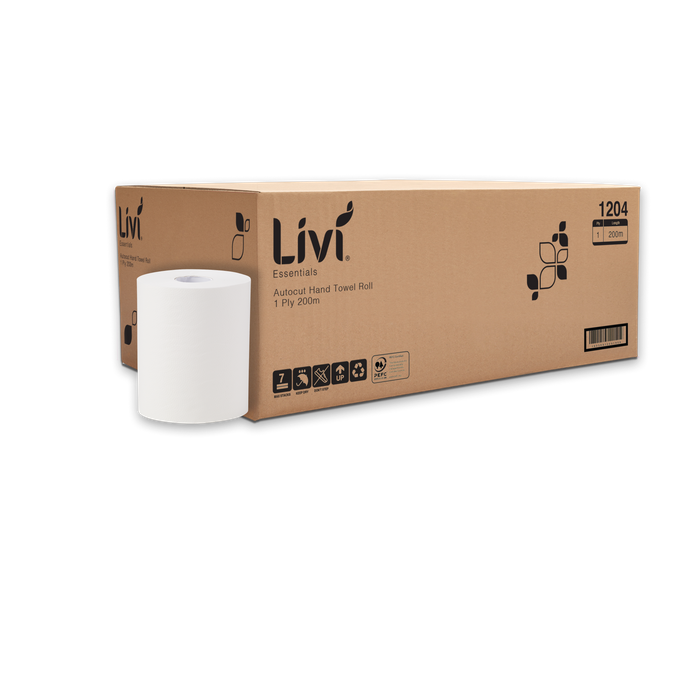 - HAND TOWEL - LIVI ESSENTIALS AUTOCUT 1 PLY 200 MTR × 6 ROLLS