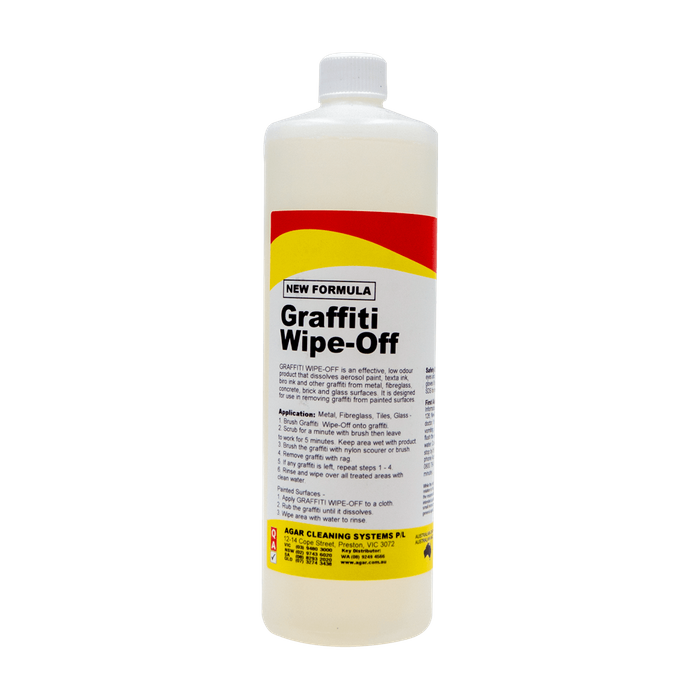 GRAFFITI WIPE-OFF has been formulated for removing graffiti from painted surfaces. It is designed to quickly dissolve felt-pen ink, ballpoint ink and spray-paint without aggressively stripping paintwork from walls or other surfaces. It is the product of choice for tackling graffiti on carpets, upholstery, walls, partitions, office furniture, traffic signs and other surfaces that could be damaged by aggressive graffiti removers.