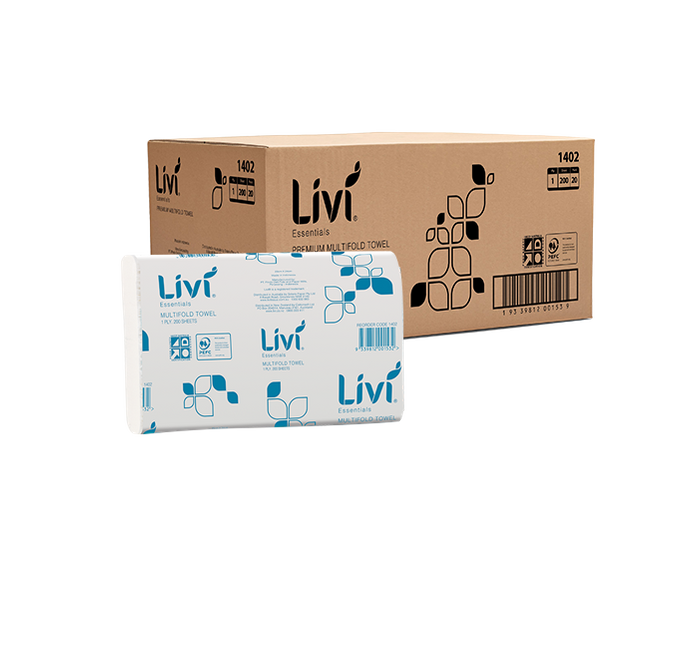 - HAND TOWEL - LIVI ESSENTIALS PREMIUM MULTIFOLD 1 PLY 200 SHEETS × 20 PACKS