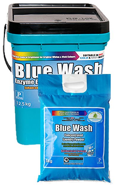 BLUEWASH can be used in all types of washing machines, front and top loading to remove a wide range of household stains including grease, fat, blood, oil, dirt and perspiration. BLUEWASH is also suitable in industrial washing machines for use in on premise laundries such as nursing homes, motels and hotels.