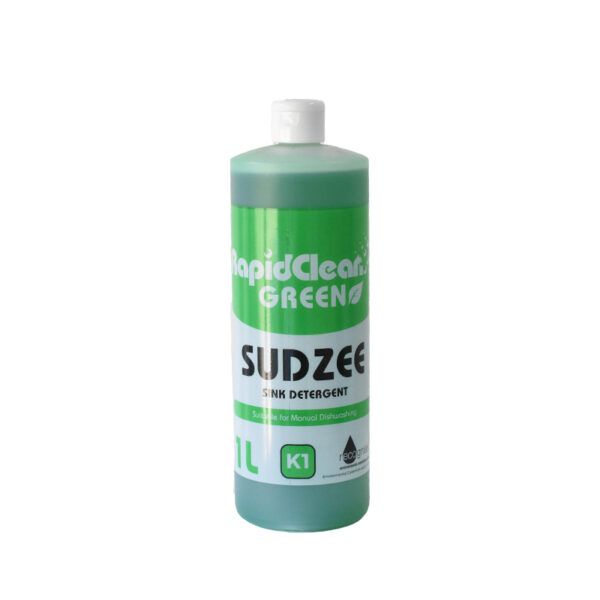 RapidClean Sudzee Sink Detergent is a highly concentrated neutral liquid detergent formulated for hand dishwashing applications and in a wide variety of manual cleaning operations. SUDZEE is a green liquid with a fresh APPLE aroma.
