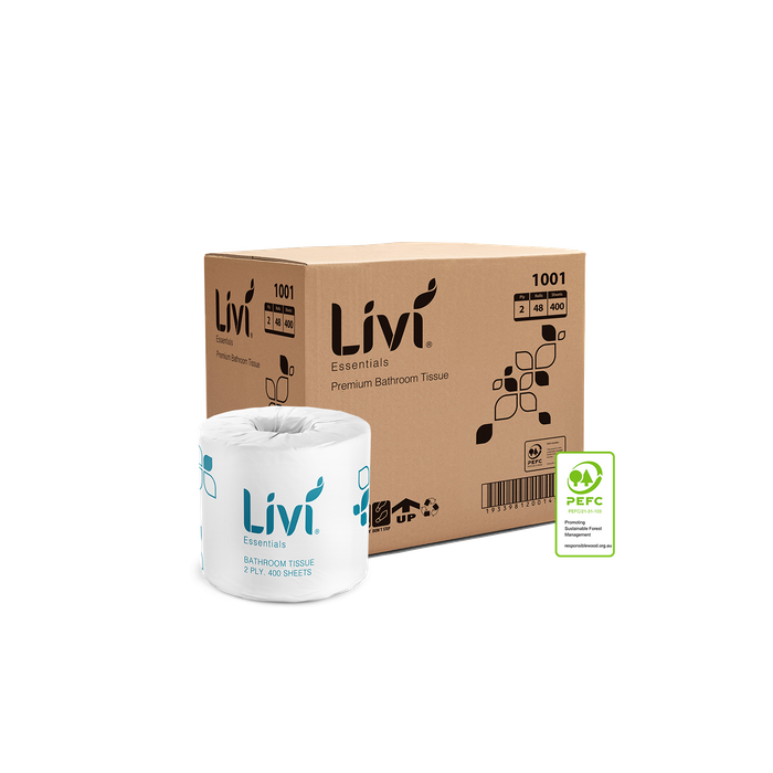 TOILET PAPER - LIVI ESSENTIALS PREMIUM 2 PLY 400 SHEETS × 48 ROLLS