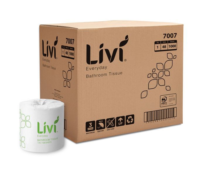 TOILET PAPER - LIVI EVERYDAY 1 PLY 1000 SHEETS × 48 ROLLS