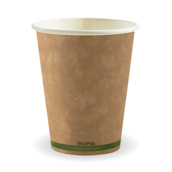 Paper BioCups are sustainably sourced from managed plantations with a bioplastic lining made from plants not oil. This cup fits our large lids.