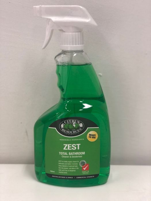 Zest (Citrus Resources) is a unique product that offers total washroom and toilet care. Its fiercely effective, yet gentle action removes lime, hard water scale, rust and waste products from all washroom surfaces and is also suitable to cleaning tiled floors. Due to the neutral citrus acids it is not suitable for use on marble, limestone, granite or other stone surfaces.